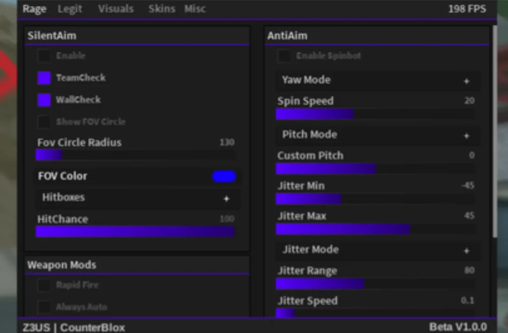 Скрипт на Контр Блокс в Роблокс без ключа — Z3US [АИМ, ВХ, АНТИ АИМЫ]