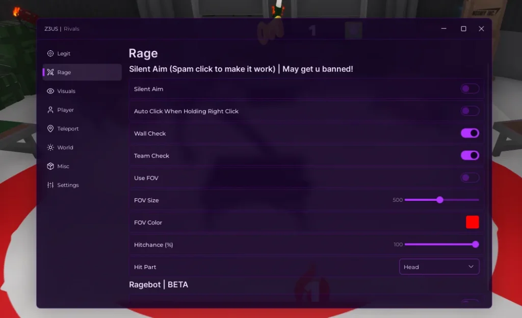 Скрипт на РИВАЛС (Соперники) в Роблокс без ключа Z3US [АИМ, ВХ, НОУКЛИП]