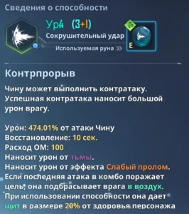 «Контрпрорыв» даёт просто огромный урон и ещё щит в размере 20% от здоровья Сон Чину на 3 секунды.